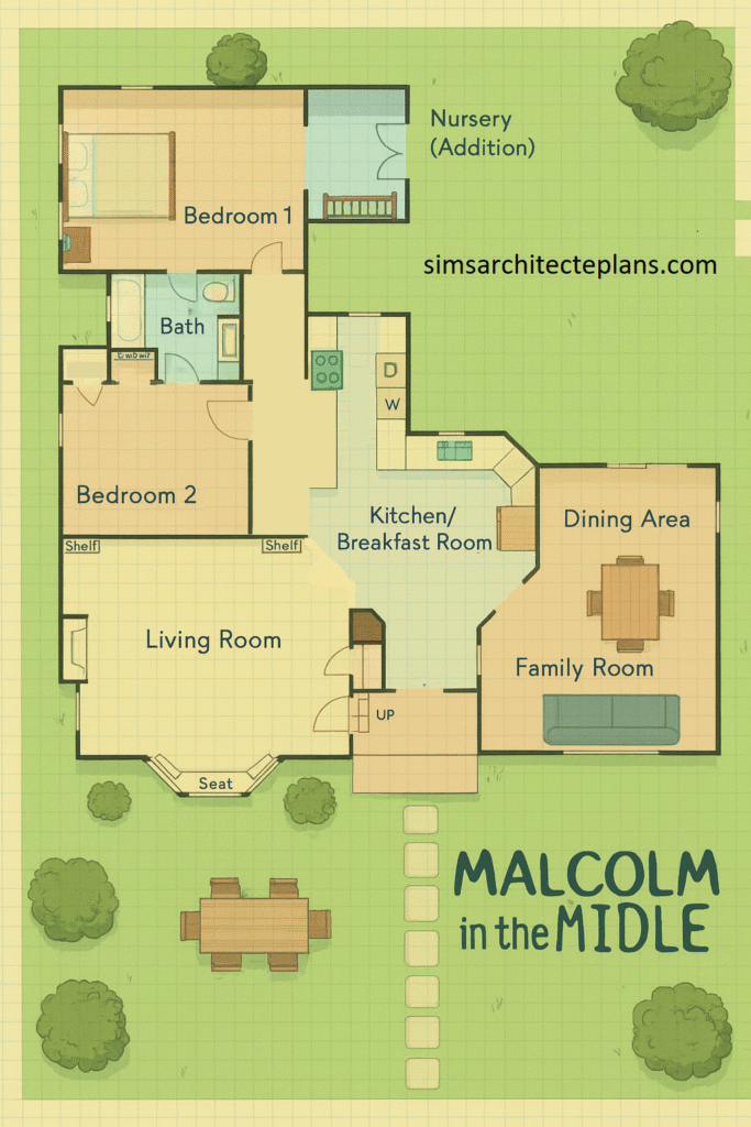 Step inside one of TVâs most unforgettable homes â lovingly recreated in a pastel, Sims-friendly blueprint style. This redesigned version of Malcolmâs house brings the beloved chaos of the series into a clean, aesthetic, and fully buildable Sims 4 plan.
